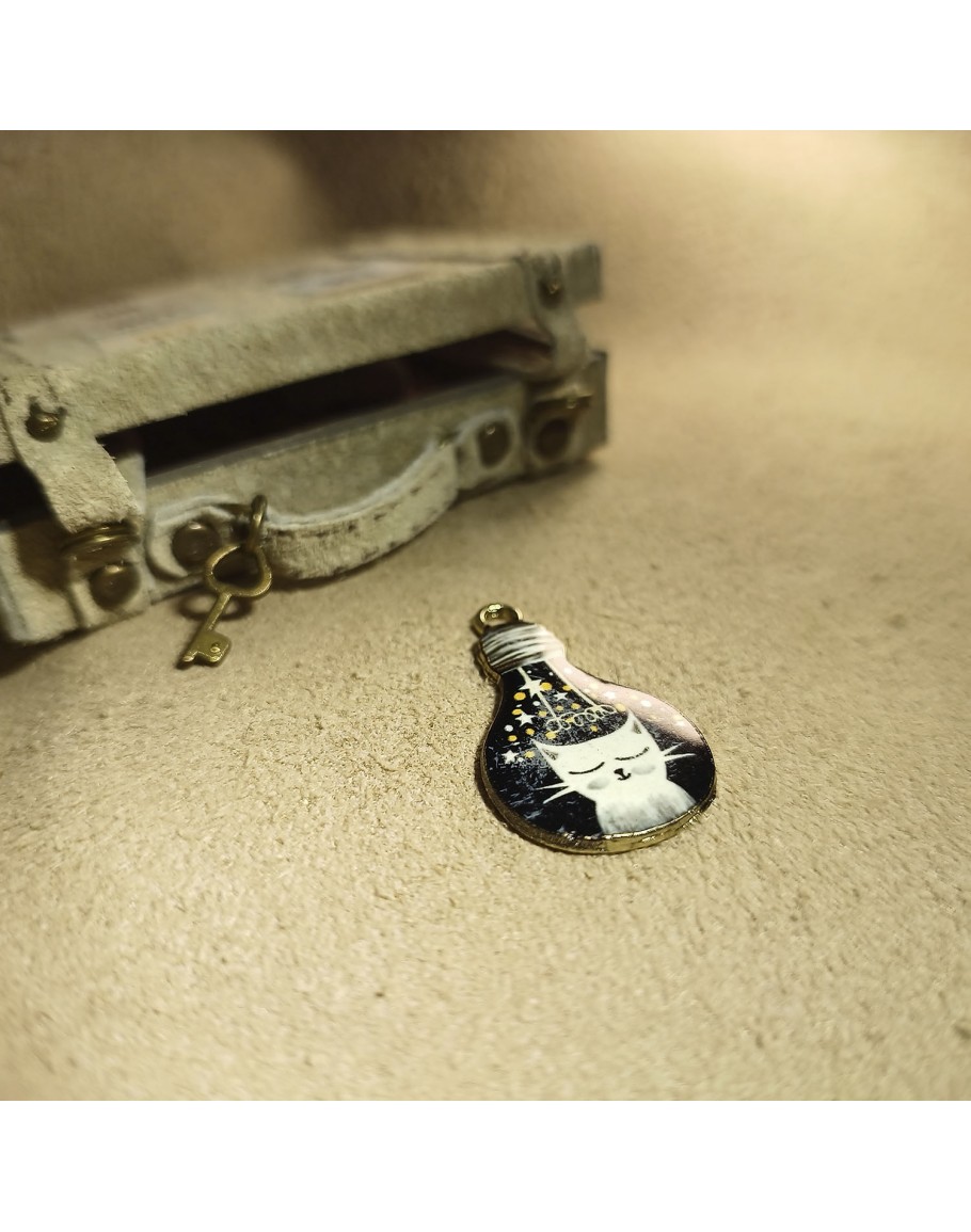 Підвіска "Кіт" з емаллю, металева, золота, 29 мм, 80-131